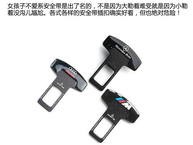 買了車后,特別是一些女孩子喜歡給自己的愛車裝飾裝飾。特別會在中控臺上擺了好多小東西,還會穿著高跟鞋開車等等這樣錯誤的用車習(xí)慣。今天榮致汽車焊接件接下去2天會盤點(diǎn)車內(nèi)好看不好用的裝飾和一些不好習(xí)慣: 1.安全帶插扣 對于那些就不想系安全帶的人,安全帶插扣自然就誕生了,去看看自己身邊朋友的車準(zhǔn)保有一輛車上有這玩意,把它一插,警報不響,不用被安全帶勒著確實(shí)舒服,但你可知,汽車上的安全裝備發(fā)展到現(xiàn)在,什么各個部位的氣囊,主動剎車,自適應(yīng)巡航都不如一根安全帶作用重要。